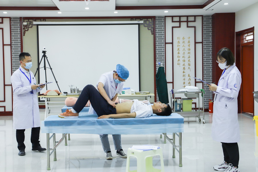 中医药学院在国家中医药管理局中医师资格认证中心的培训和学校领导小组的指导下,对考场设计、考场布局、考试流程等进行了反复推演,对考官、考务、标准化体检者、技术人员和引导员进行了分批次培训,对各类模型、器械、耗材等用品进行了仔细核对检查,全力保障水平测试的顺利进行。