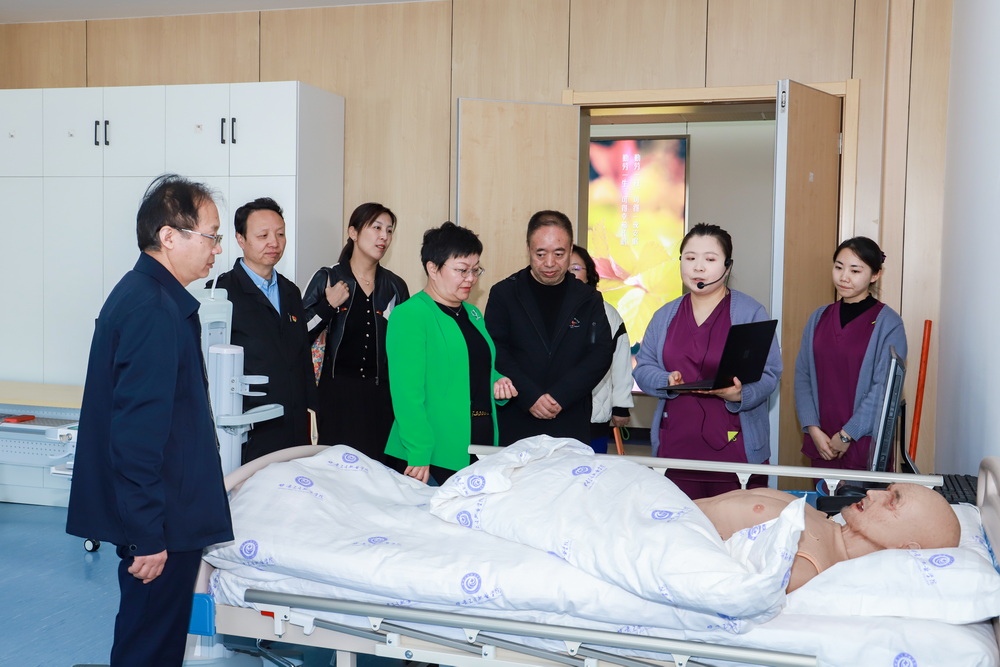 随后,周敬一行在毕效武等的陪同下实地参观了学校临床护理学院母婴护理实训基地、老年人护理实训中心、中医药学院实训中心,详细了解各功能室设施设备、软件技术和教学应用情况,仔细听取工作人员的介绍。周敬一行在参观学习中对威尼斯官网虚拟仿真技术和医学实训中心建设表示赞赏,双方就护理服务、老人照护等方面的特色及成果进行了探讨和交流,表示以此次交流学习为契机,将进一步加强与威尼斯官网的交流合作,共同推动双方专业建设更好发展。