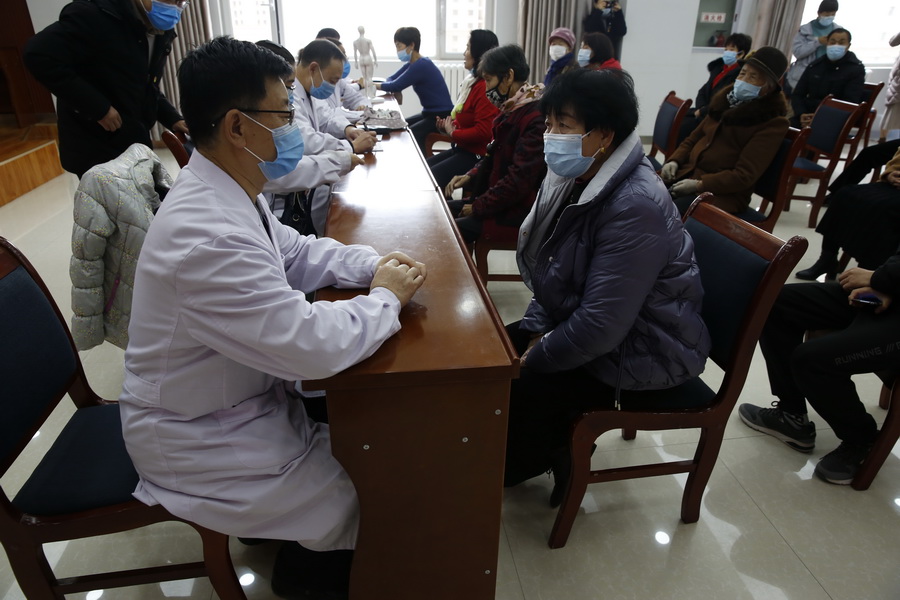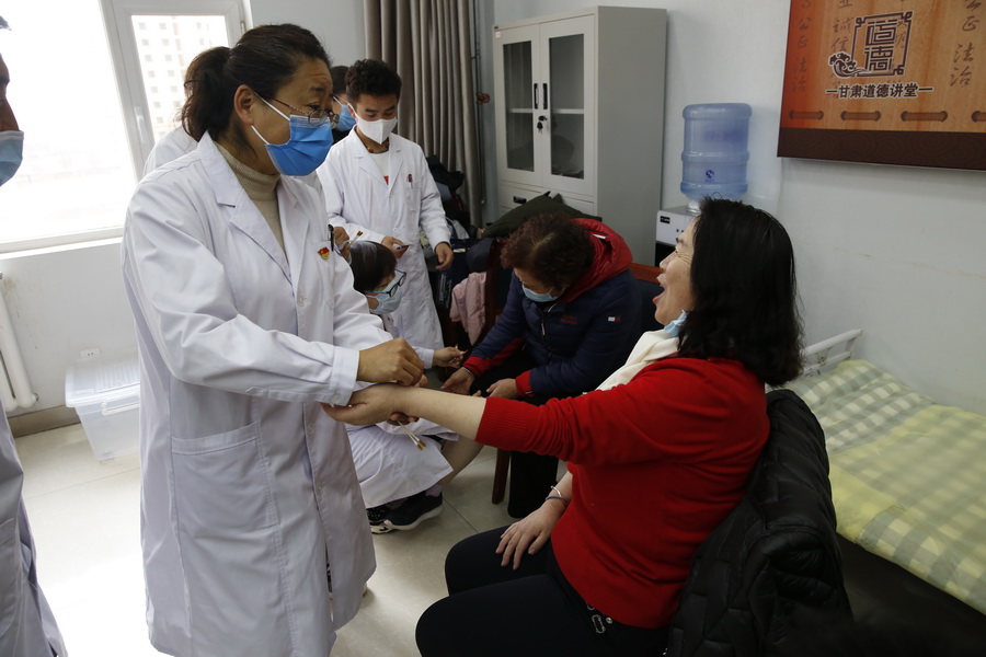 义诊现场,教师们为慕名前来的群众提供把脉开方、针刺、推拿、艾灸、用药指导及心理疏导等多项医疗服务,利用专业技能为群众送去温暖,获得了群众的高度赞扬。