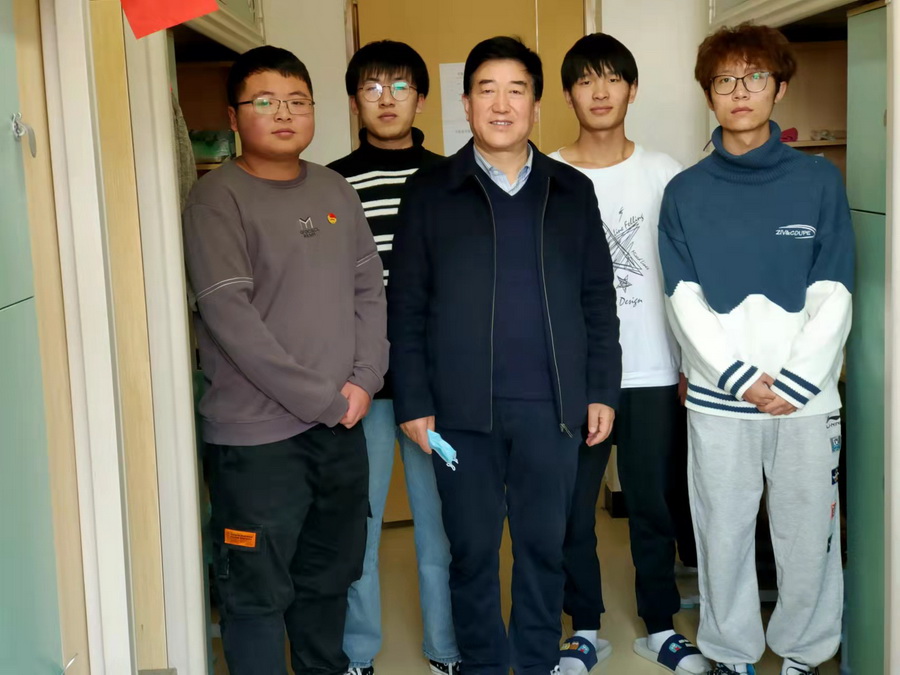 12月28日中午,党委书记姜德民深入自己联系的2号学生公寓208宿舍看望学生。