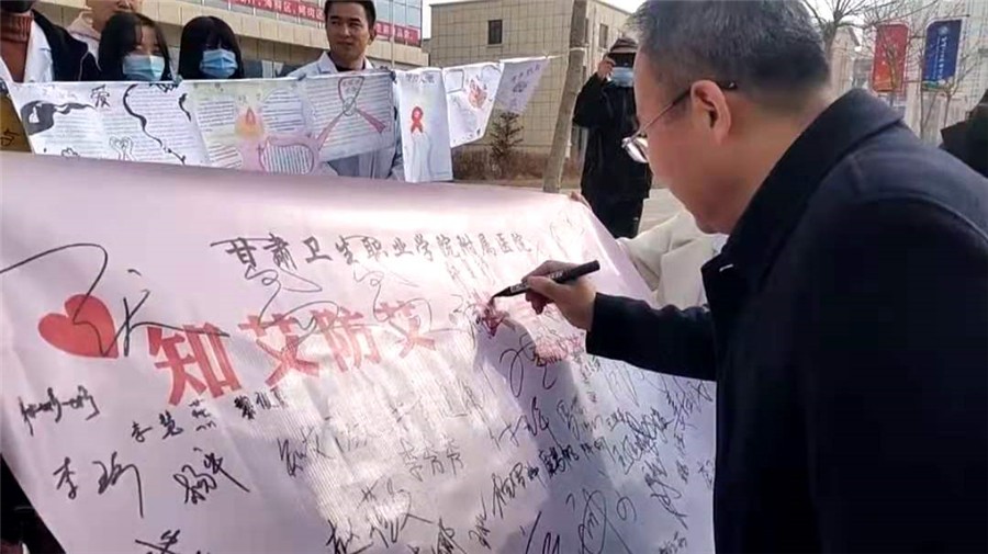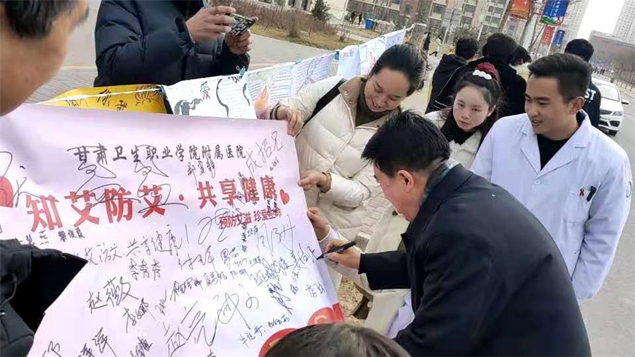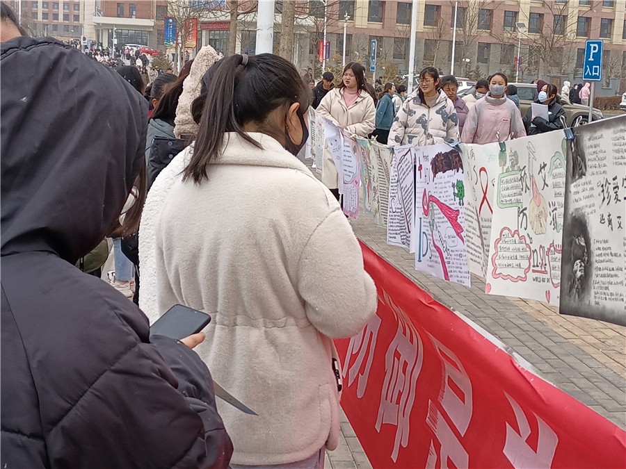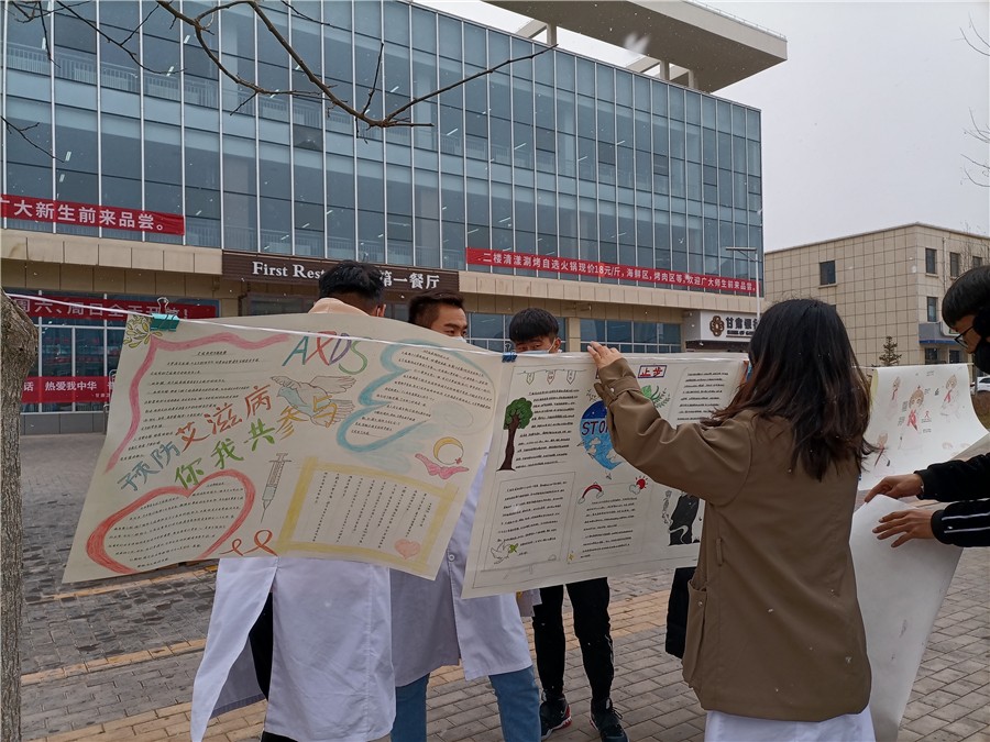2020年12月1日,是第33个“世界艾滋病日”,我国的宣传活动主题是“携手防疫抗艾,共担健康责任”。为提高全校师生艾滋病基本知识水平,增强自我防护能力,学校附属医院在12月1日举办以“知艾防艾,共享健康”为主题的宣传系列活动,参加本次活动的有校领导、天使爱心社社员、青年志愿者及全校师生。