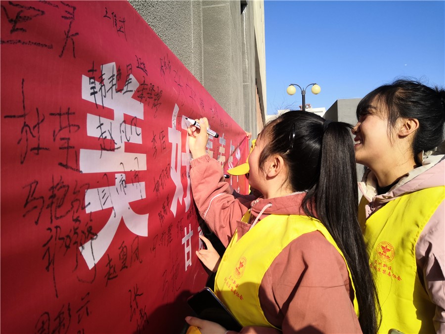 参观结束后各位志愿者在李鹏飞老师的带领下庄严宣誓,并在 “同心远离毒品危害、共享美好青春年华”的横幅上签上了自己的名字。