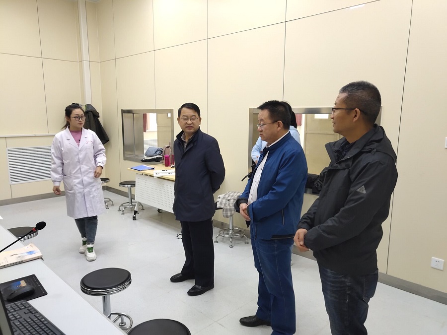 黄刚一行实地查看了学院医学检验系、医学影像系和口腔医学系的实验实训室建设情况和正在进行的实验课教学情况,一边查看一边同学院领导及老师进行交流沟通。张志钢详细介绍了自今年6月份学院三系实验实训室重新规划设置以来的建设情况和目前的各专业实验实训课的开课情况,并对学院的实验实训教学人员的工作情况、实验实训教学的管理情况、实验实训室的规划建设、明年的实验实训设备购置预算方案、实验实训室文化建设情况等做了汇报。