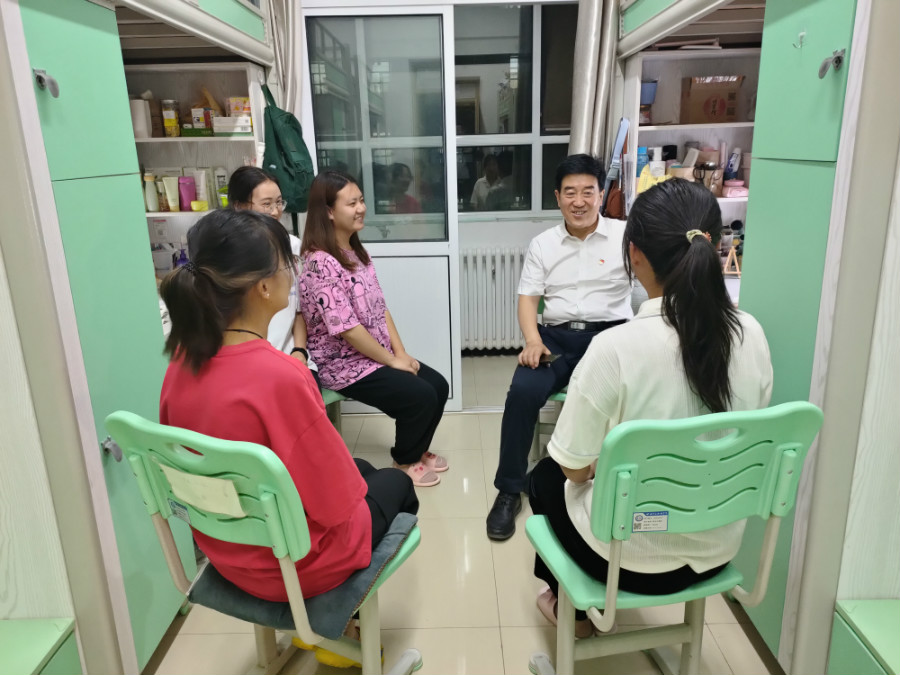 6月28日,党委书记姜德民走访了自己联系的宿舍4-410,详细了解学生思想、学习和生活情况,认真聆听学生对学校建设、发展的意见和建议,及时掌握学生学习生活中遇到的困难和需要解决的问题。