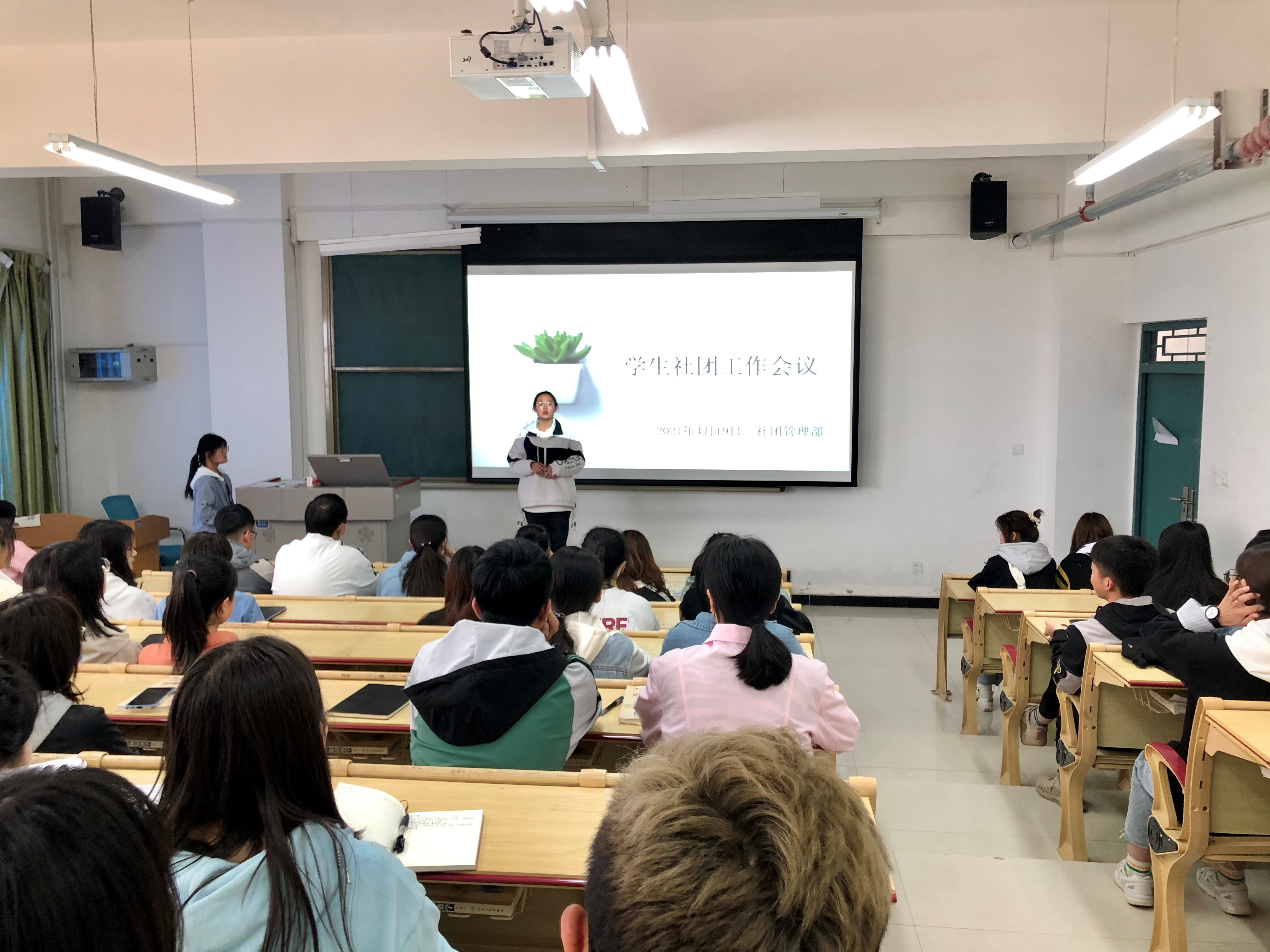 4月19日下午,校团委在三号教学楼207阶梯教室组织召开学生社团工作会议。社团管理部门、各社团负责人及学生代表近100人参加。团委书记衡冰出席会议并讲话,会议由社团管理部长陈文林主持。