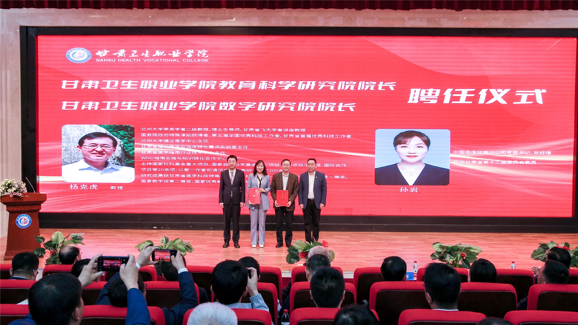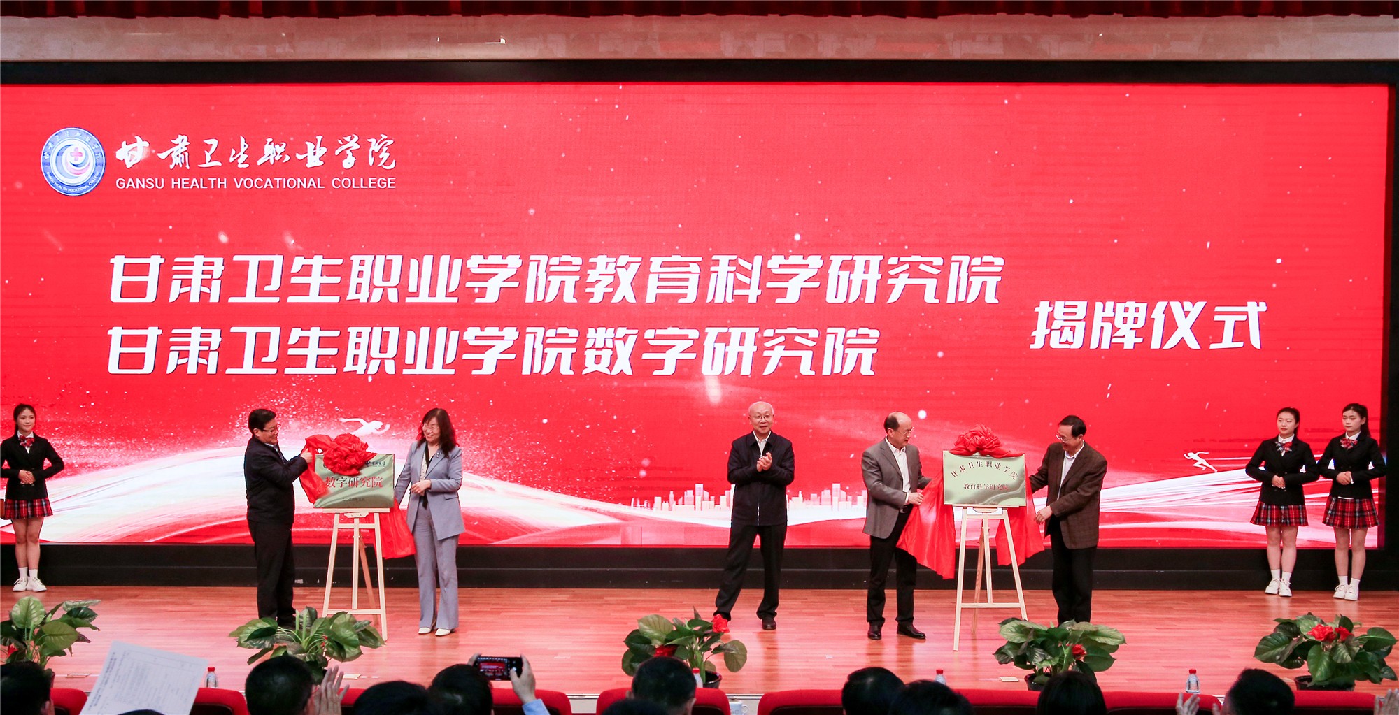在全场热烈的掌声中,包磊书记宣布welcome欢迎光临威尼斯集团教育科学研究院、数字研究院正式成立。郭天康主席、杨克虎教授、孙岩总经理、王彦成巡视员、孙敏主任为新成立学院揭牌。学校聘任杨克虎教授为教育科学研究院院长,孙岩总经理为数字研究院院长,包磊书记、王建成校长为两位院长颁发证书。