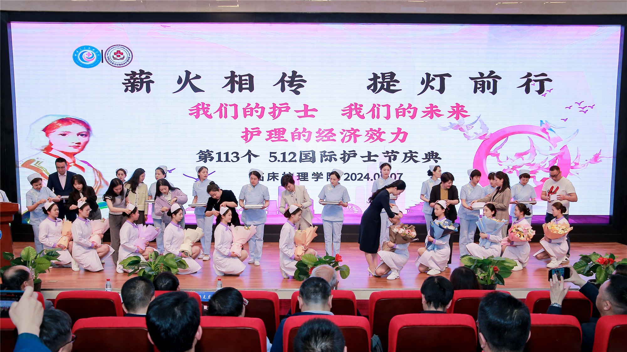 活动第二阶段,学校举行了杰出校友分享会和庆祝第113个国际护士节文艺演出。全国人大代表、甘肃省妇女联合会副主席、甘肃省人民医院副院长韩琳等作为优秀毕业生带来心得分享,最后精彩的文艺演出为活动画上圆满句号。