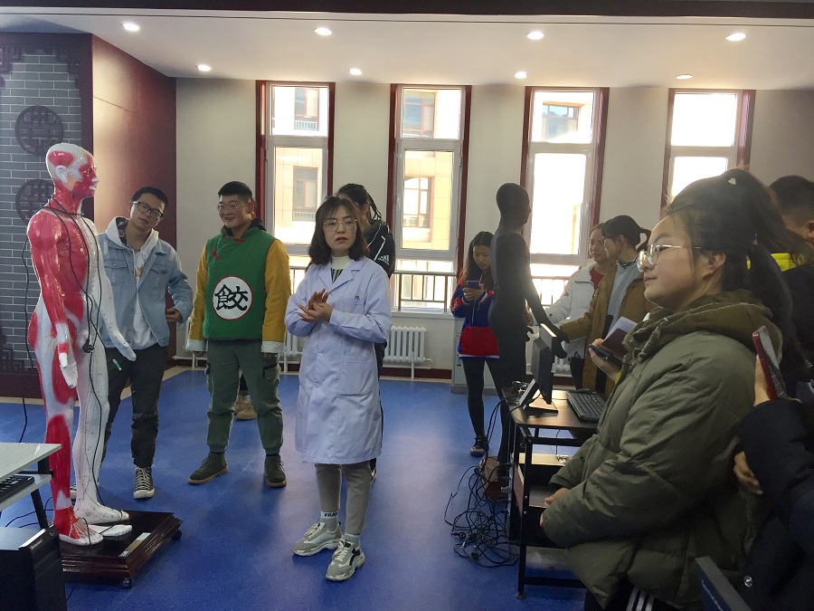 在设施完善、蕴含丰富中医文化内涵的实训基地中,指导老师带领同学们先后参观了中医基础实训中心、针灸推拿实训中心、中医临床实训中心和健康服务实训平台。同学们在老师的指导下体验了各种实训设备,既有传统经典的,又有结合了现代科学技术的,实训基地丰富的内容使同学们耳目一新,倍感新奇。老师的耐心讲解让参加活动的每一位同学深切地体会到中医文化的博大精深。