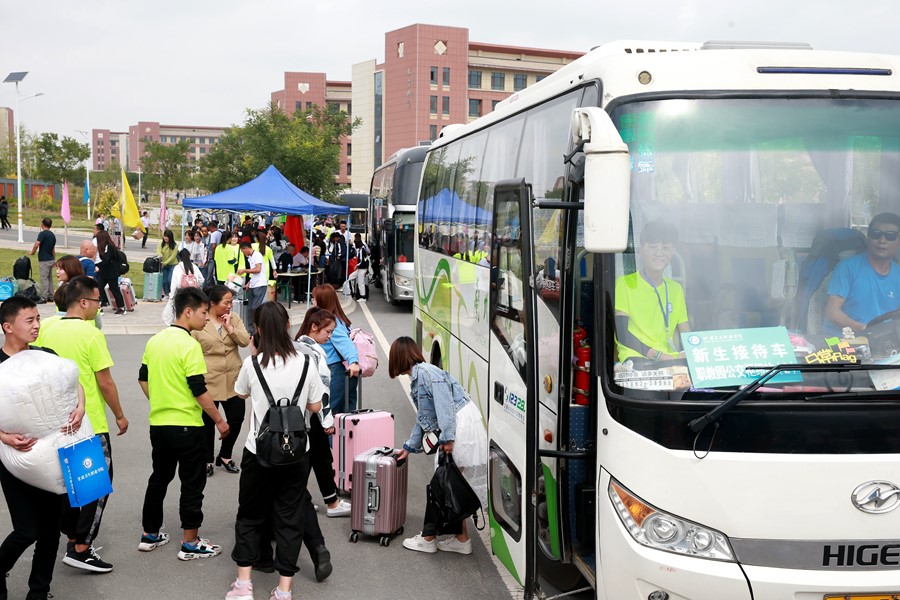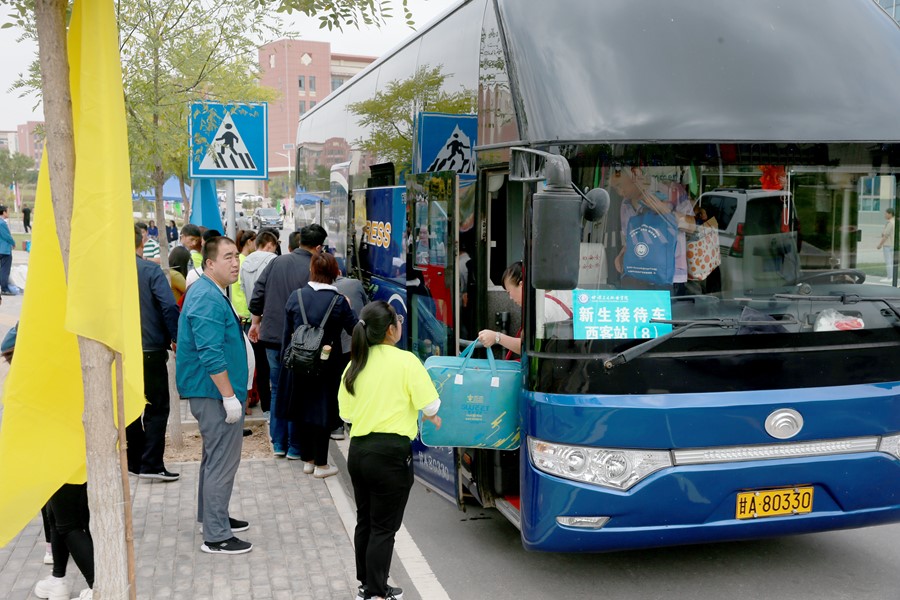 报到当天,威尼斯官网在兰州火车站、兰州西站、职教园区公交枢纽站设置了校外迎新站,接待新生和家长,并安排大巴转运至兰州新区学校报到点。