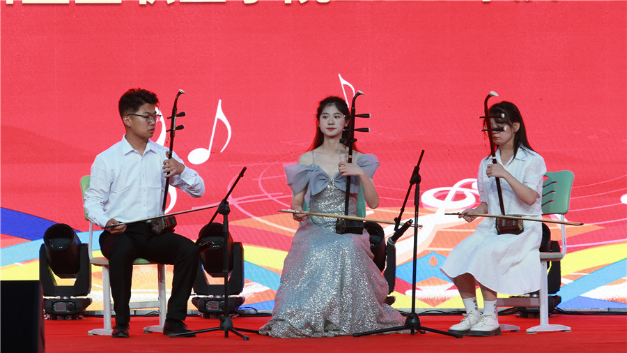 晚会用丰富多彩的表演形式,弘扬伟大建党精神,讴歌新时代、唱响新征程,既有优美的舞蹈《唱支山歌给党听》《纸扇书生》《小城谣》《奔跑的青春》《洗衣舞》《幻想童话》《醉春风》《藏家儿女心向党》《万疆》《鸣沙踏歌》《绽放》,又有深情的朗诵《党的华章》《我深深爱恋的祖国》,动人的合唱《强国有我》《妈妈教我一支歌》《七律·长征》,还有精彩的二胡齐奏《赛马》。学生们载歌载舞,用最优美的舞蹈、动听的歌声表达了对党和祖国的热爱之情,用最青春的声音表达对老师的爱、对学校的怀恋。
