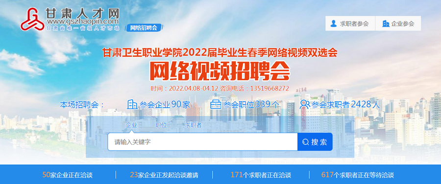 百日冲刺季,云上助力时——学校举办2022年春季网络双选会和“直播带岗”专场招聘会发布时间:2022-04-12