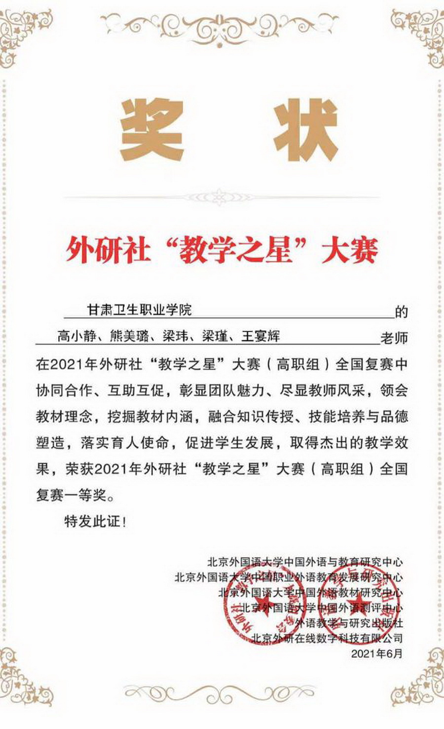 welcome欢迎光临威尼斯集团英语教师团队荣获2021年外研社“教学之星”大赛(高职组)全国复赛一等奖发布时间:2021-09-09 -